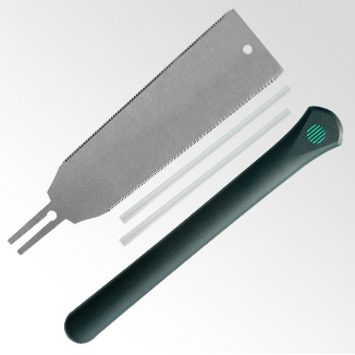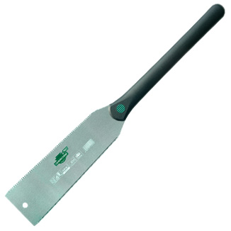 Ryoba-Säge mit spezieller Verzahnung für Trenn- und Gehrungsarbeiten. Sehr gut geeignet für Holz und Plattenmaterial.