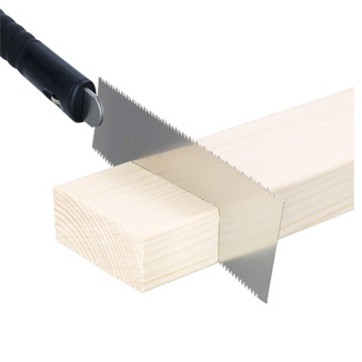 Eine vielseitige Ryoba-Handsäge für Holz und Plattenmaterial. Verwenden Sie eine Seite für Trenn- und Gehrungsarbeiten und eine Seite für Längsschnitte. Diese Shark Saw-Säge hat eine besonders feine Verzahnung.