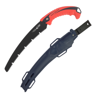 Eine professionelle Japansäge von 270 mm für Garten, Park und Forstwirtschaft in einer extra schweren Version. Mit der speziellen M-Verzahnung dieser Baumsäge können Sie auch einfach und schnell dicke Äste mit einem sauberen Schnitt sägen. Durch das gebogene Sägeblatt werden die Zähne tiefer und leichter in das Holz gezogen, so dass insbesondere dicke Äste schneller geschnitten werden.