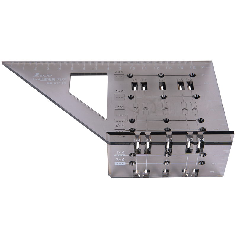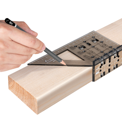 Der Shinwa 3D Mitre Square wurde unter Berücksichtigung amerikanischer Standards entwickelt und bietet spezielle Markierungen für 2×4-Schnittholz, wobei die Löcher mit der Mitte dieser Abmessungen ausgerichtet werden. Während diese Maße unseren amerikanischen Kollegen vielleicht vertrauter sind, bietet die Transparenz dieses Quadrats universellen Vorteilen für europäische Holzarbeiter. Die einfache Ausrichtung und Markierung ist ein Segen und erhöht die Präzision Ihrer Arbeit, unabhängig von Ihrem Standort. Die gut ablesbaren Graduierungen tragen zusätzlich zu einem reibungslosen Messerlebnis bei.