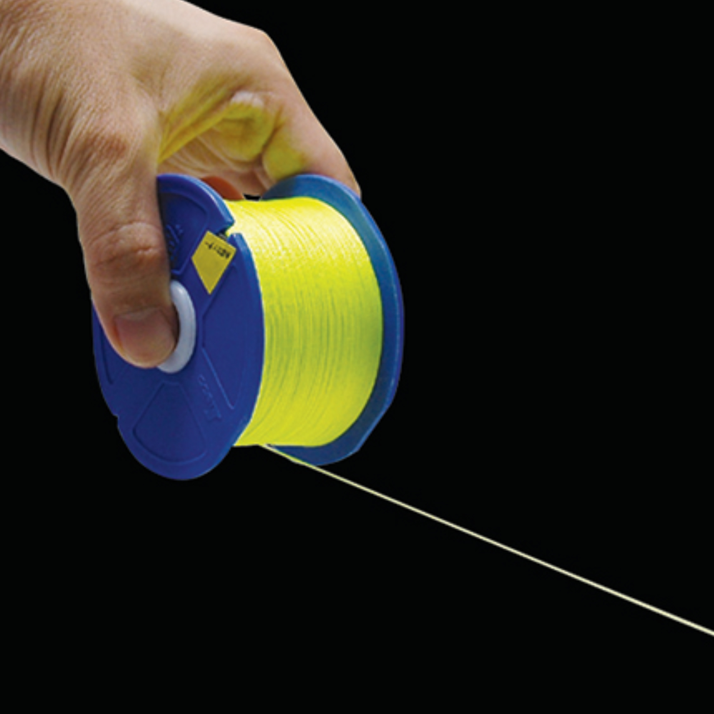 Die Schnur wird auf einer Spule geliefert, die sich leicht abrollen lässt. Außerdem befindet sich auf der Spule eine Klinge, die den Gebrauch einer Schere überflüssig macht.