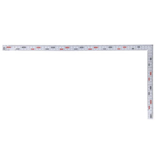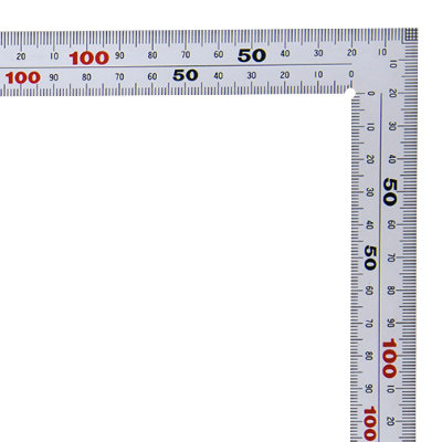 Das Außenmaß dieses Zimmermannswinkel beträgt 50 cm und das Innenmaß 45 cm (entlang des Hauptendes).