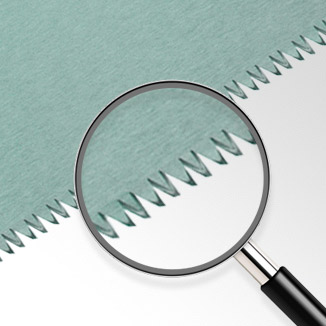 Das Sägeblatt der Sägen der Takagi Premium-Serie ist hohl geschliffen. Die Dicke des Sägeblattes ist daher geringer als die Dicke der Schneidfläche, auch wenn die Zähne nicht gesetzt wurden. Das Sägeblatt bleibt daher nicht im Holz stecken. Darüber hinaus wird das Sägeblatt sehr präzise poliert, um die Reibung weiter zu verringern. Dies macht das Sägeerlebnis unglaublich reibungslos.